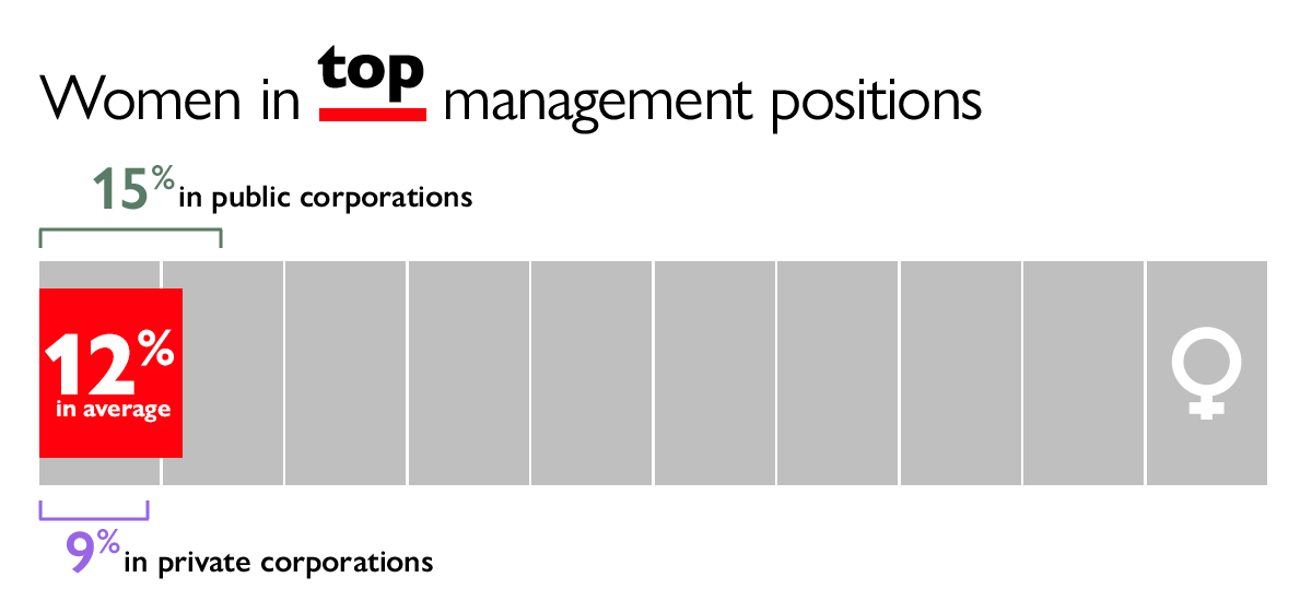 The findings have not been very encouraging so far, with women remaining significantly underrepresented in the sector, while the gap widens with seniority. Speaking of the latter, which is the UN theme for the International Women Day 2021, after analysing data for 32 companies and organisations actively involved in the energy field, our findings show a mere 12% representation of women in top management positions in the Greek energy sector, significantly lower than the already low global average of the industry which stands at 17%.